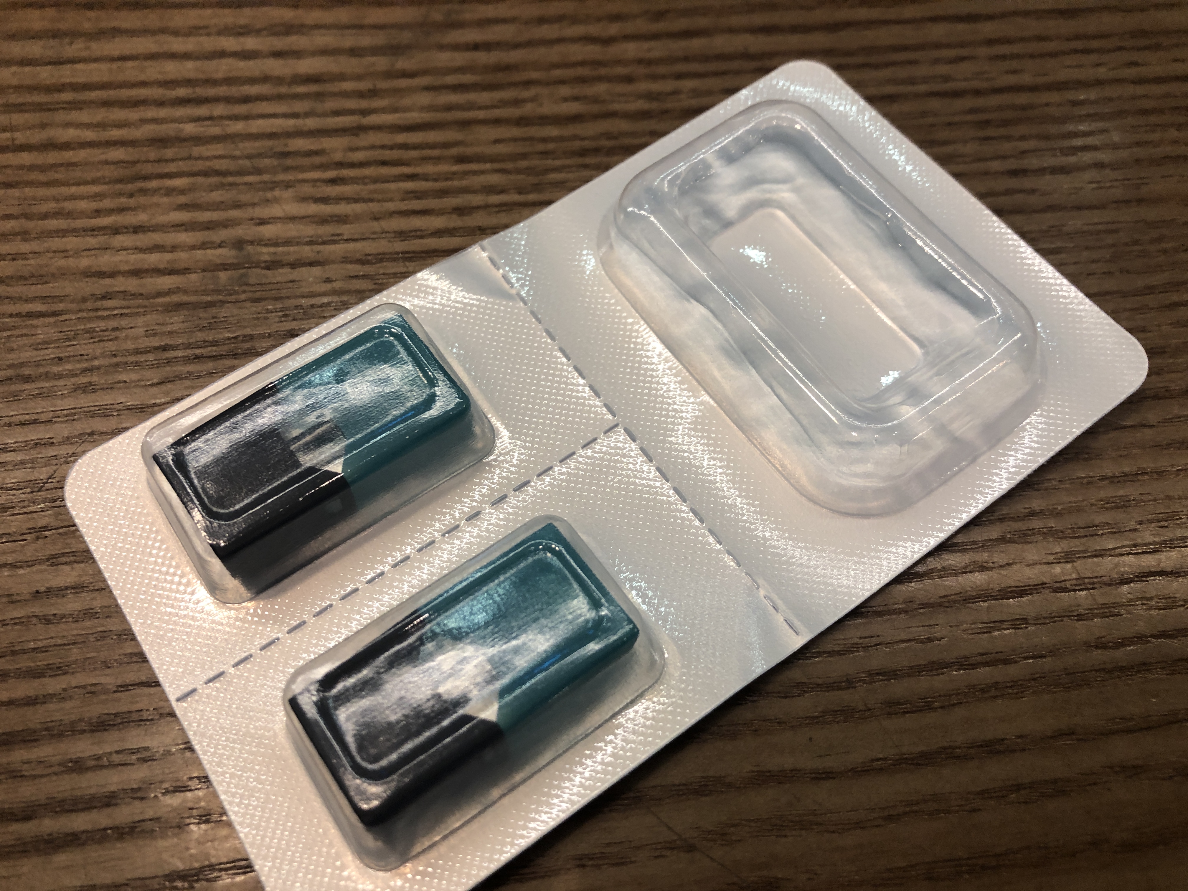 다음은 쥴 팟입니다. 한갑(9000원)을 구매하면 저렇게 두 개의 팟이 들어있는데 팟 한 개가 일반 담배 1갑 분량이라고 하는데, 전혀 그렇지 않은 것 같습니다. 체감상으로는 반갑? 도 안되는 것 같습니다. 그리고 저렇게 작은 팟이 두 개가 들어있는데 왜 굳이 상자는 이렇게 큰 것일까요?